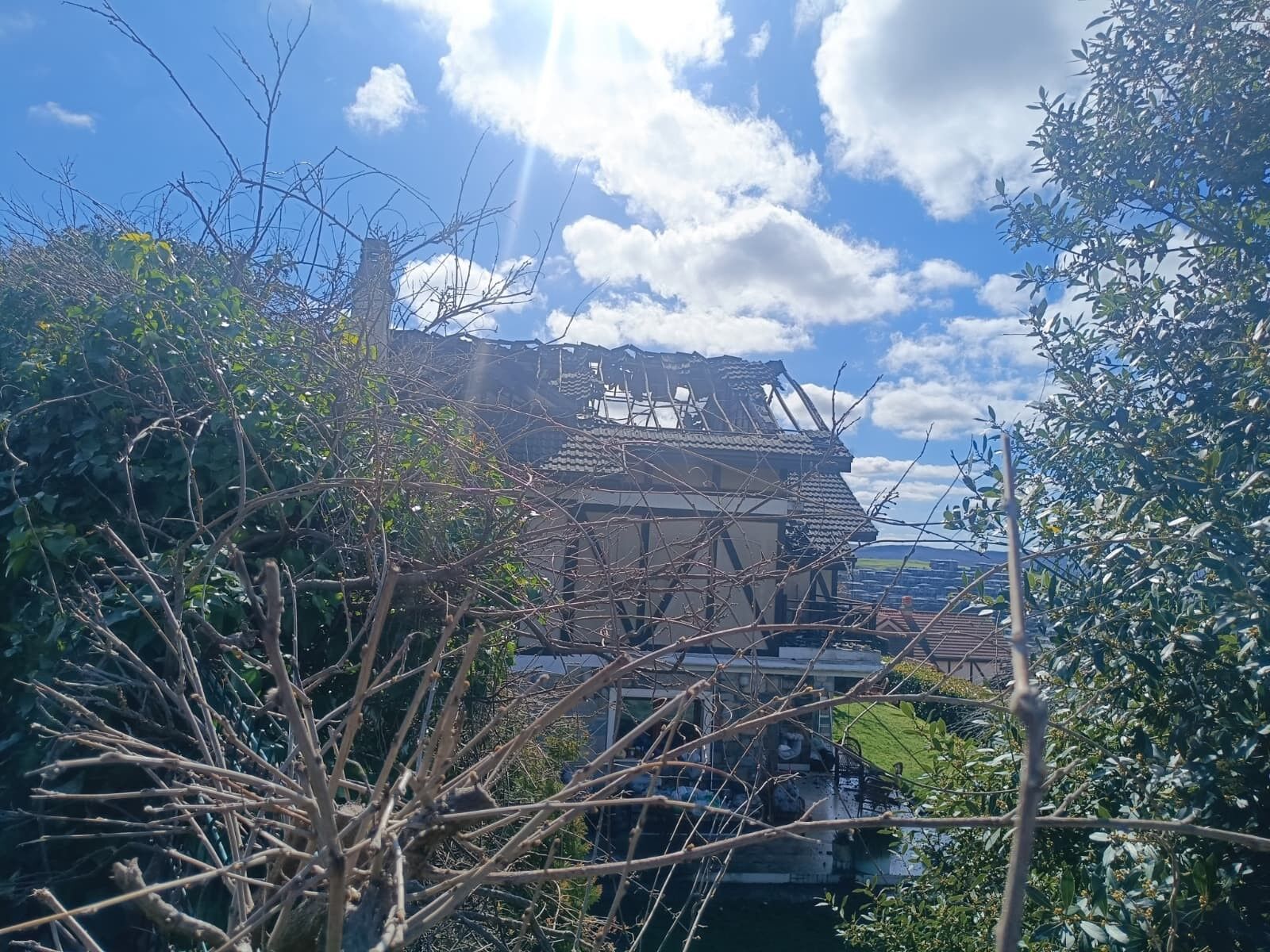 Öte yandan, ünlü oyuncunun çıkan yangında küle dönen çatı katı, havadan görüntülendi.